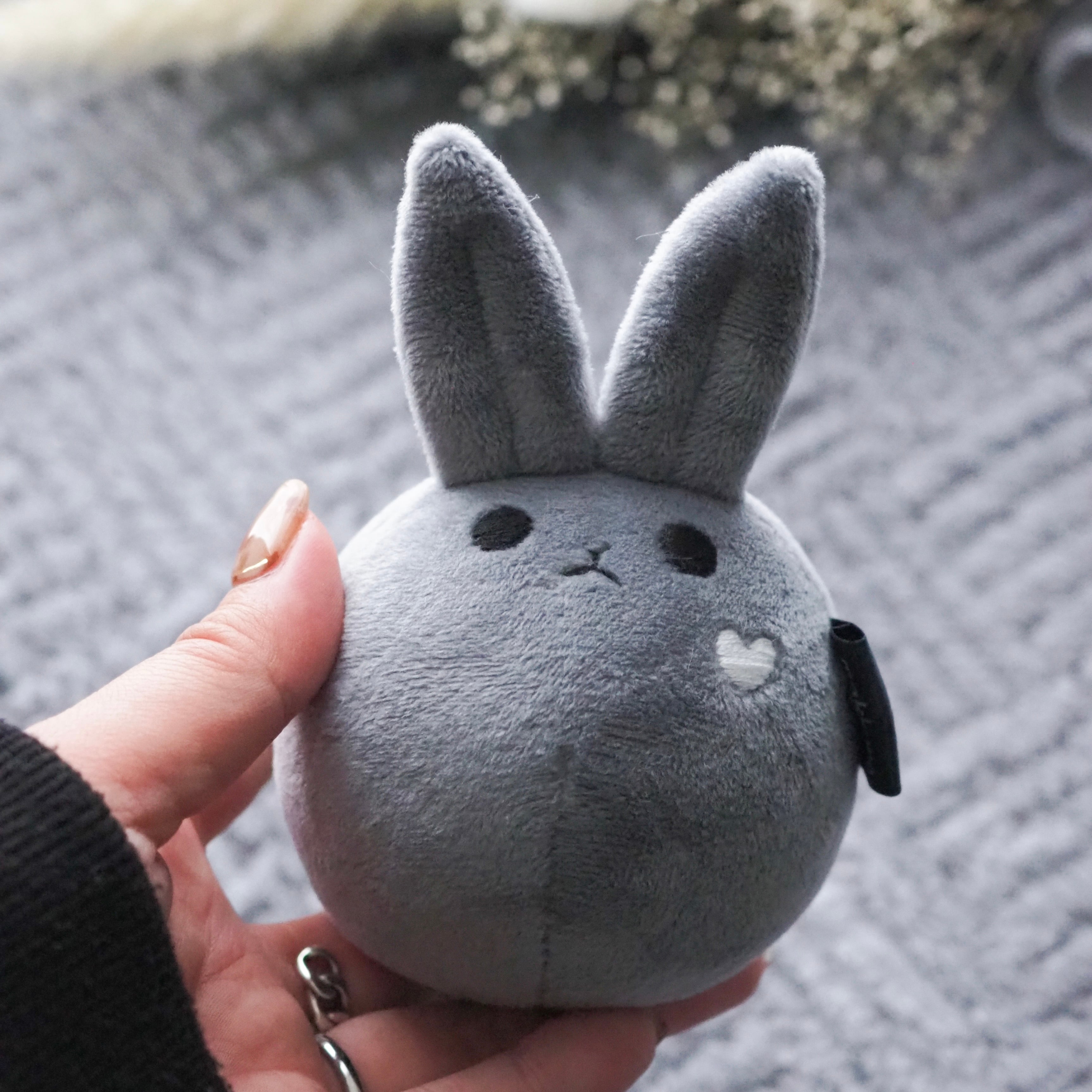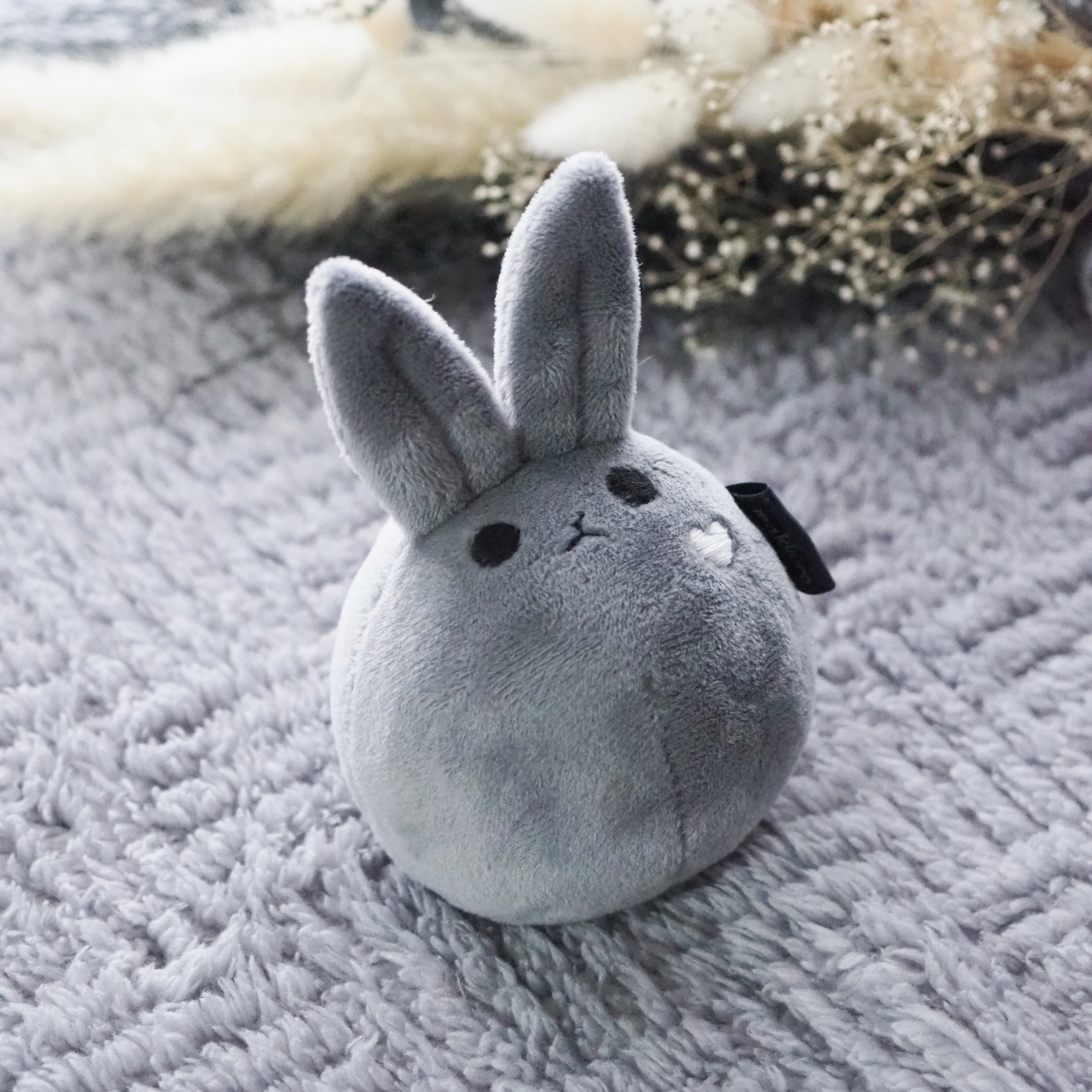 まっくろうさぎのオリジナルマスコット「うさぎのmeme」のぬいぐるみチャームです。