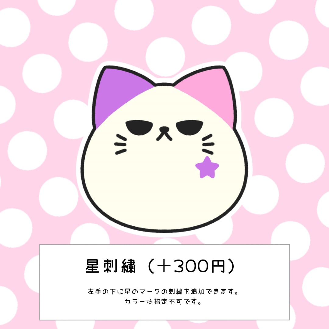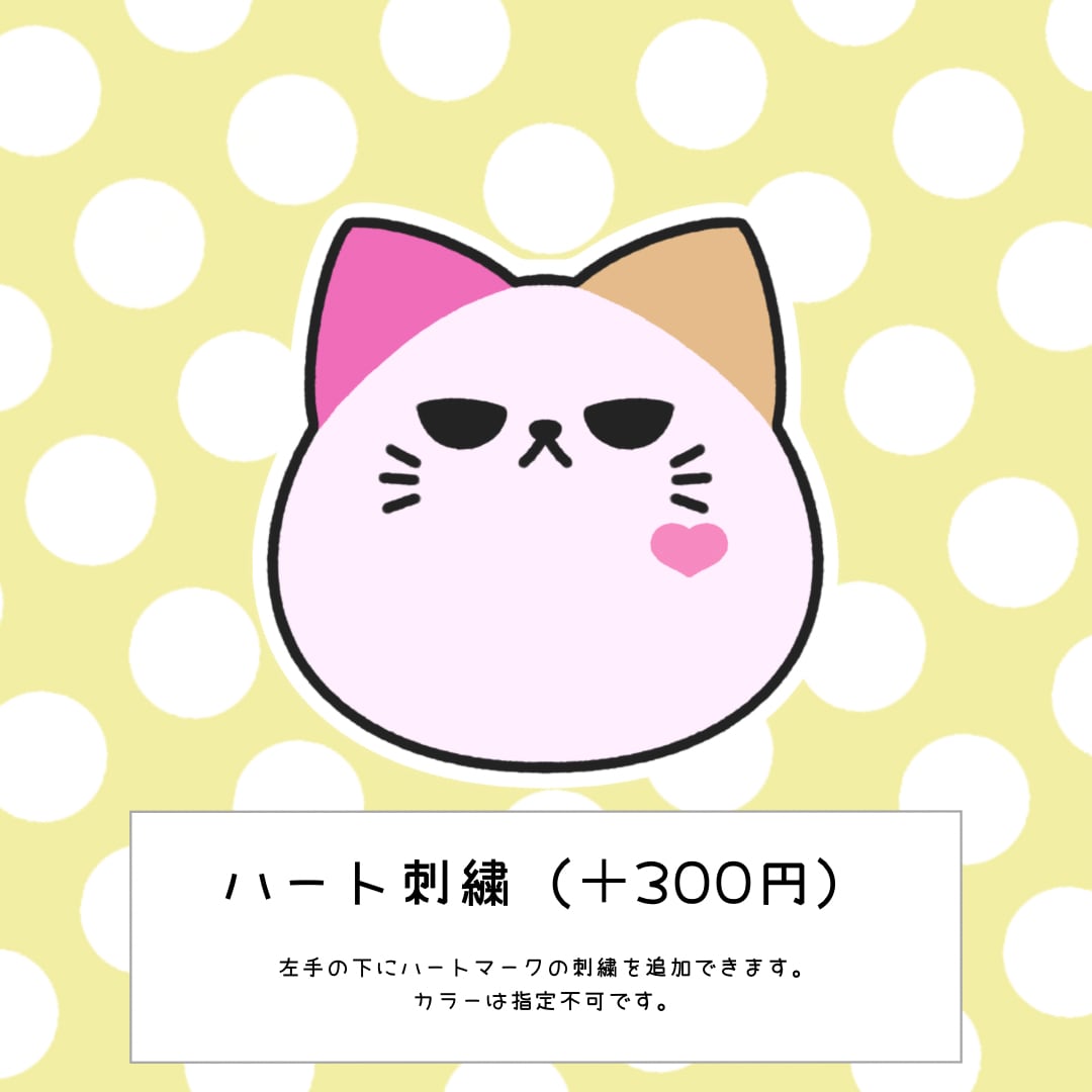 ・刺繍追加オプションは星かハートのどちらか1つのみになります。